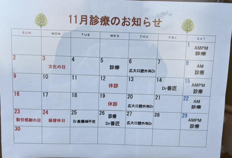 5日、26日(水)は祝日の週のため診療いたします🦷